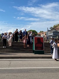 船着き場付近で スターの到着を待つ人々 |