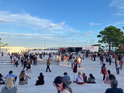 映画祭パス所有者は前回までは限られたルートのヴァポレット(水上バス。本島や近隣の島と繋がっている)、島内バスのみが無料であったが、今回はヴァポレットも島内バスもすべての路線で無料という制度となっており、驚きつつもたいへんありがたかった。上映会場はそれなりに点在しており、無料でのバス利用(たいへん混雑している時間もあったが)ができるのはかなりありがたかった。ぜひとも来年以降も続いて欲しいものである。